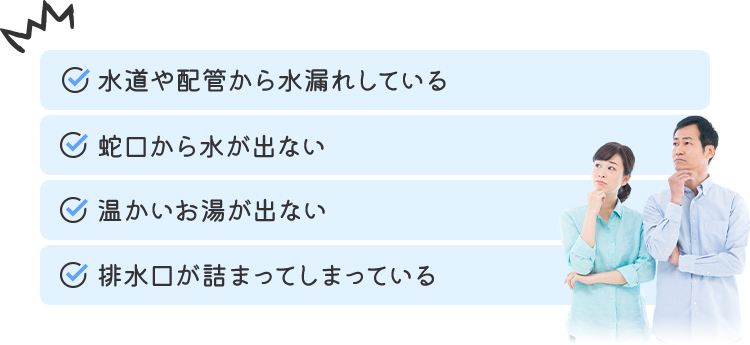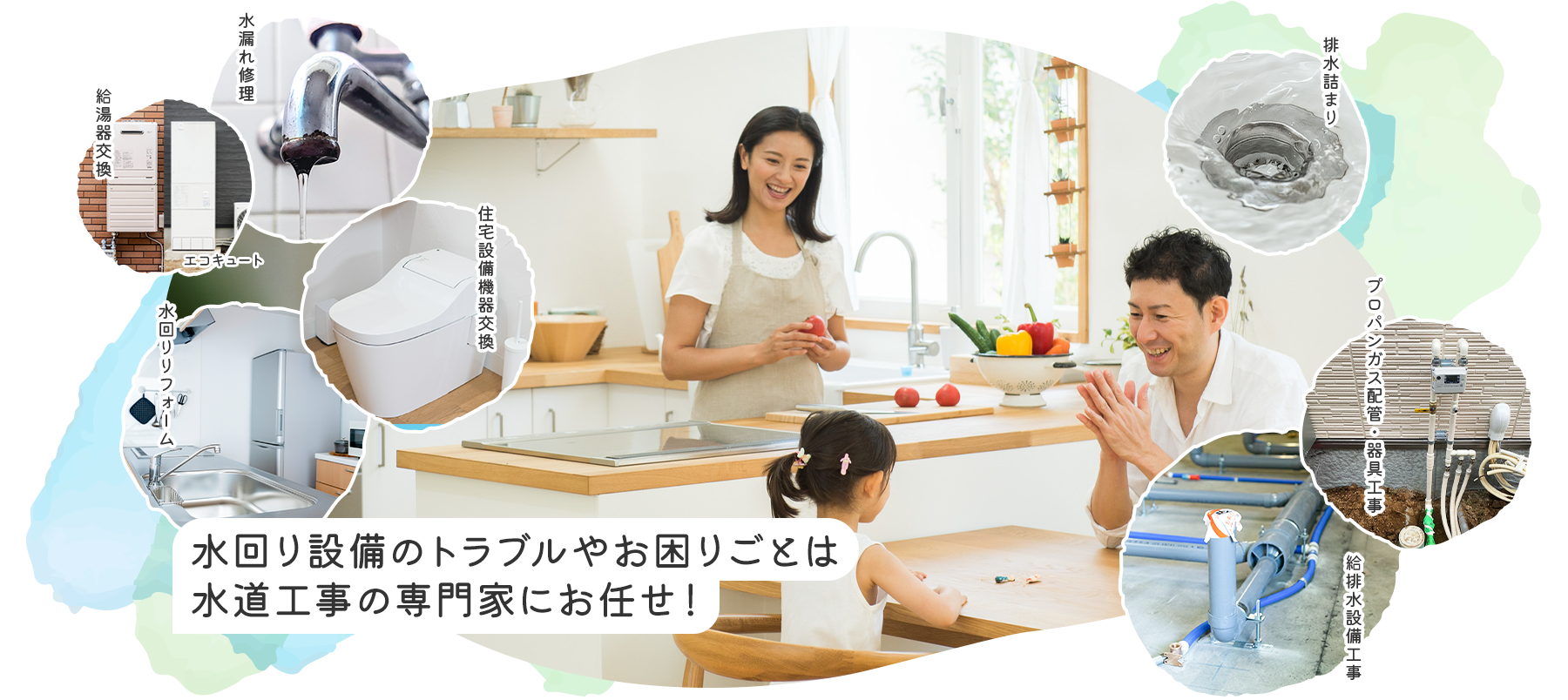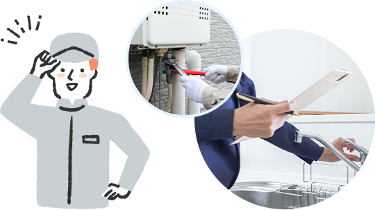 水漏れ修理や排水詰まり、給湯器交換といった、生活に欠かせない設備のお困りごとに対応しております。