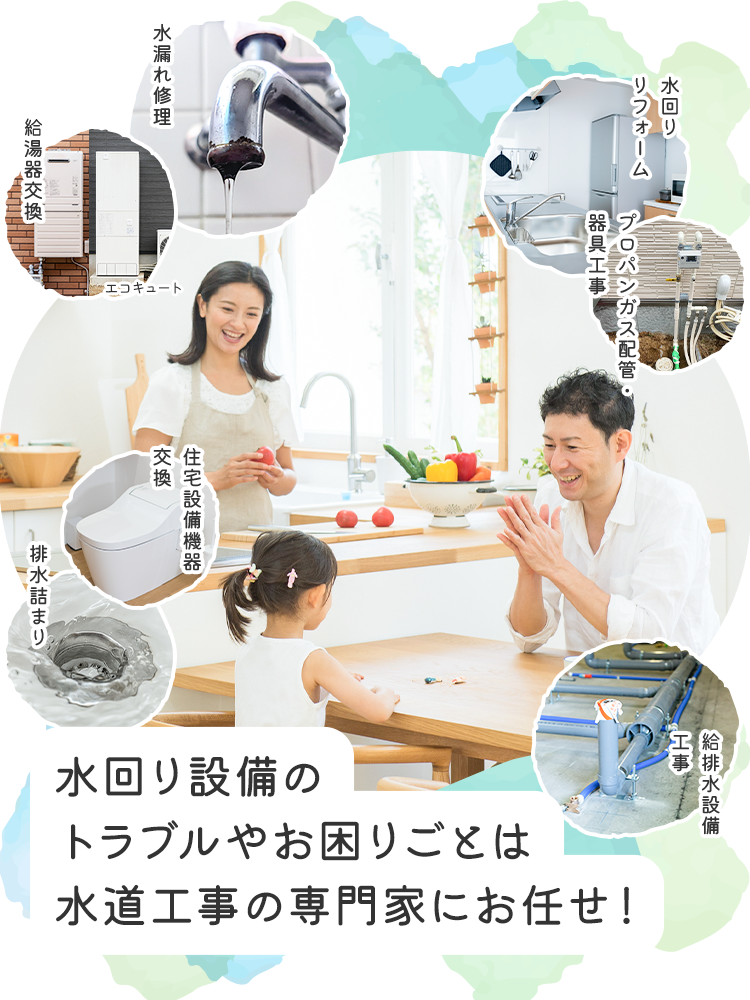 水漏れ修理をはじめ、突然のトラブル対応や日々のメンテナンス工事もお任せください! 地域密着の親身な施工で、地元埼玉県の皆様の暮らしをサポートいたします。
